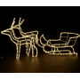 Stwórz magiczną, świąteczną atmosferę w swoim domu lub ogrodzie dzięki efektownej dekoracji LED przedstawiającej dwa renifery ciągnące sanie! Konstrukcja wykonana jest z trwałego tworzywa i stalowego stelaża, opleciona energooszczędnym wężem LED, który po włączeniu mieni się wieloma kolorami, przyciągając wzrok i wprowadzając świąteczny nastrój.